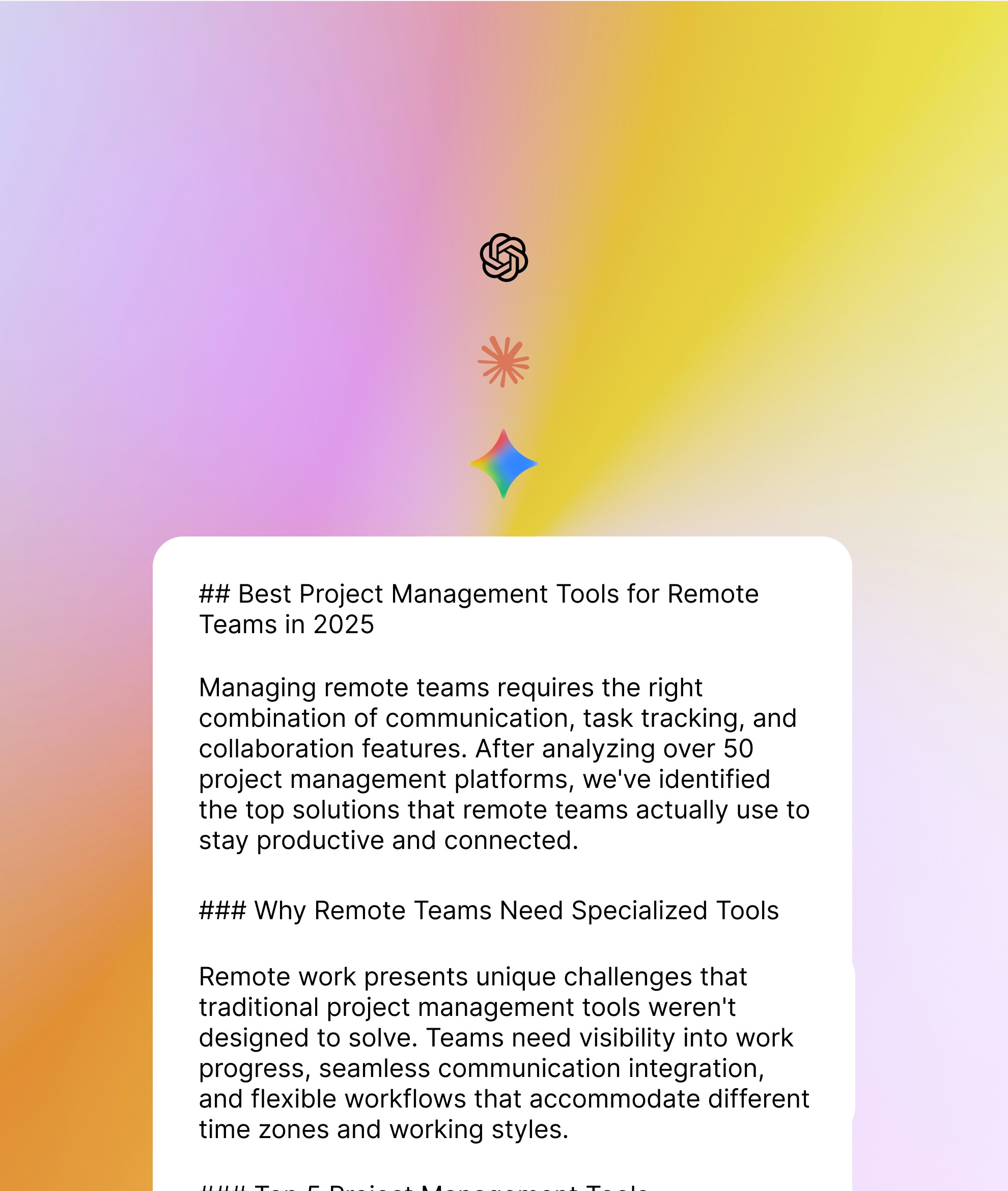 Find the exact questions your target customers ask AI engines about your industry/product category using our question-discovery prompts.