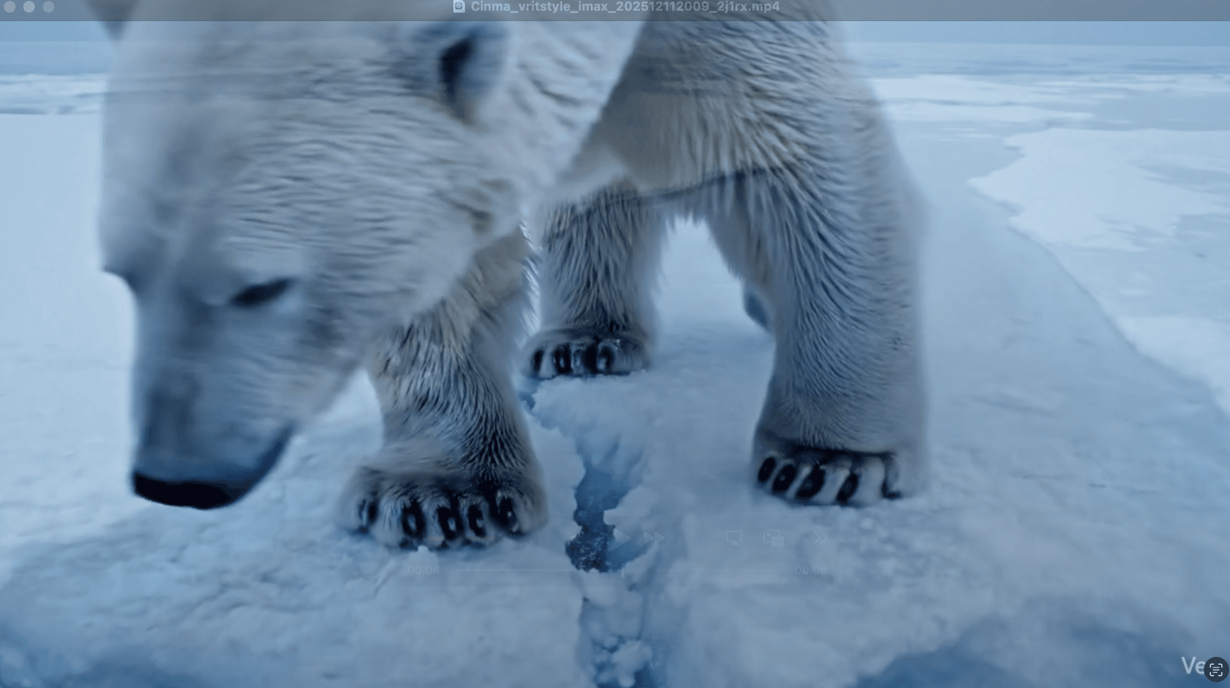 Arctic IMAX Polar Bear Ice Journey: VEO, Sora, Runway prompt
