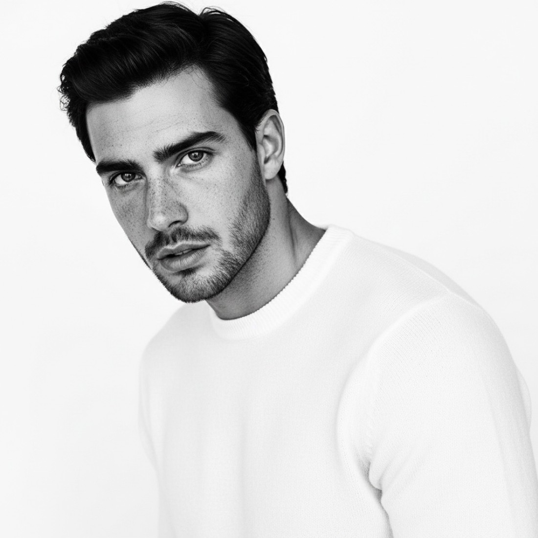 Use Google Imagen, Nano Banana, Midjourney & ChatGPT to create monochrome LinkedIn and Instagram profile portraits - generate AI professional headshots with white backgrounds, emphasize engaging expressions, approachable facial features, and social media-ready composition