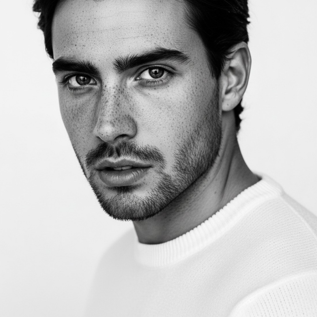 Use Google Imagen, Nano Banana, Midjourney & ChatGPT to create monochrome over-the-shoulder professional portraits for LinkedIn, Instagram, and social media - generate AI headshots with subtle expressions, soft gradient backgrounds, and approachable facial engagement