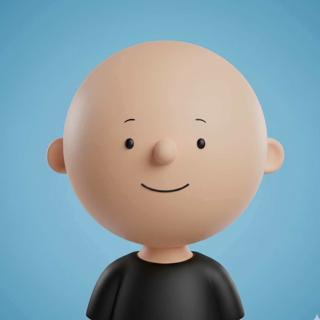 Use Google Imagen, Nano Banana, Midjourney & ChatGPT to create round-headed character avatars with small eyes, tiny smile, and black shirt on clean blue backgrounds - perfect for social media profiles, nostalgic branding, and distinctive minimal identity