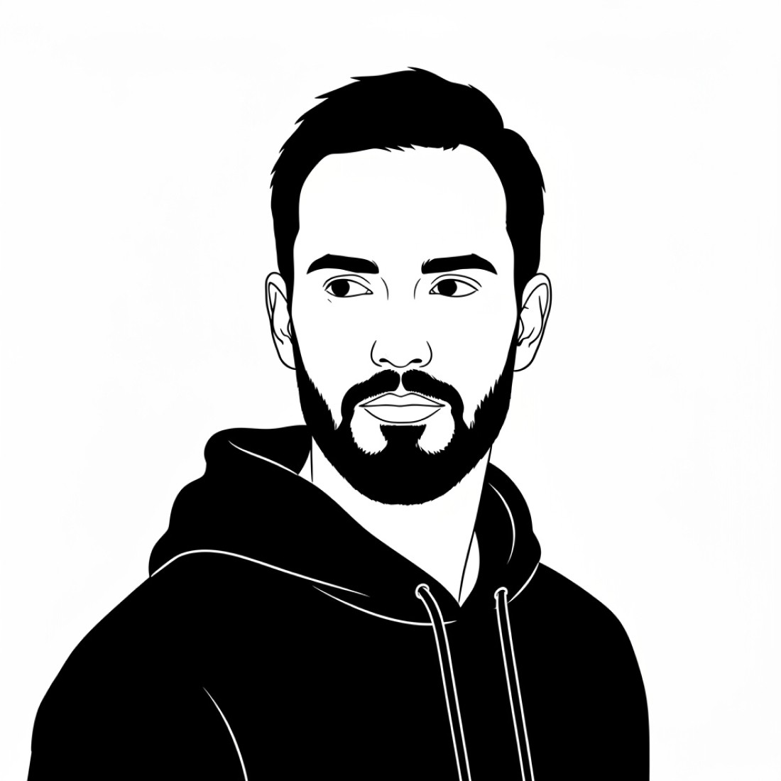 Use Google Imagen, Nano Banana, Midjourney & ChatGPT to create trendy minimalist avatars with distinctive beard, casual hoodie, and clean line art styling on pure white backgrounds - perfect for tech professionals, startups, creative industries, and contemporary digital identity with modern urban aesthetic