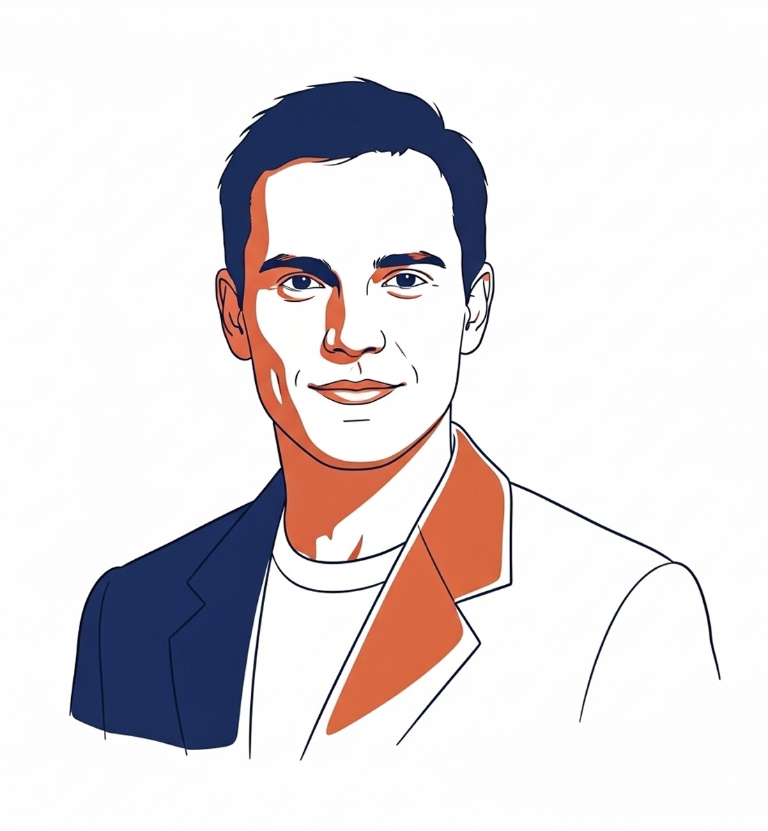 Use Google Imagen, Nano Banana, Midjourney & ChatGPT to create sophisticated duo-tone avatars with navy blue fills, terracotta orange accents, and structured jacket styling - perfect for business professionals, creative executives, modern branding, and distinguished digital identity