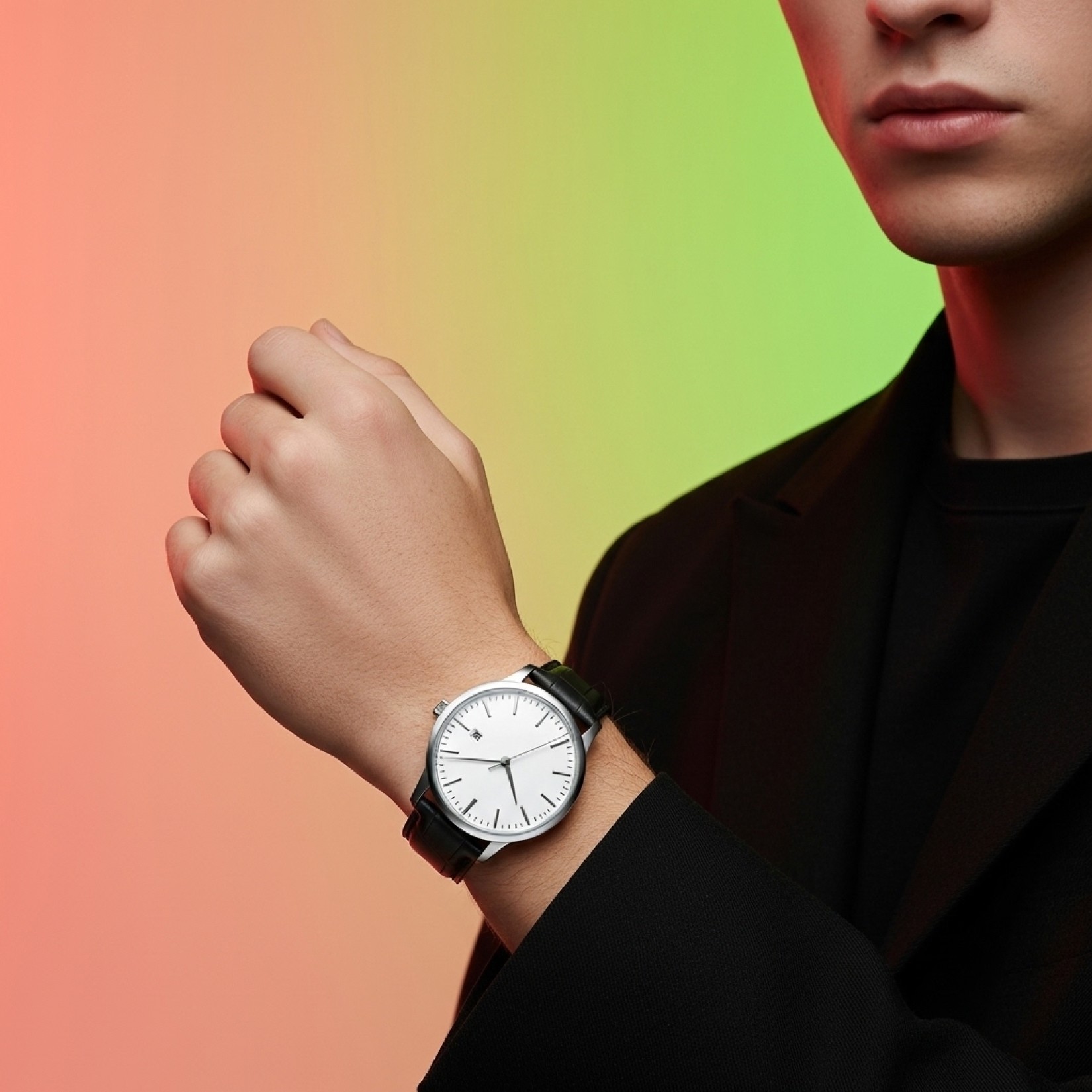 Use Google Imagen, Nano Banana, Midjourney & ChatGPT to create abstract product watch photography with coral liquid pools, magenta ripple effects, weightless aesthetics - perfect for abstract artistic campaigns, creative timepiece marketing, commercial photography, and AI-generated product images seeking surreal presentation
