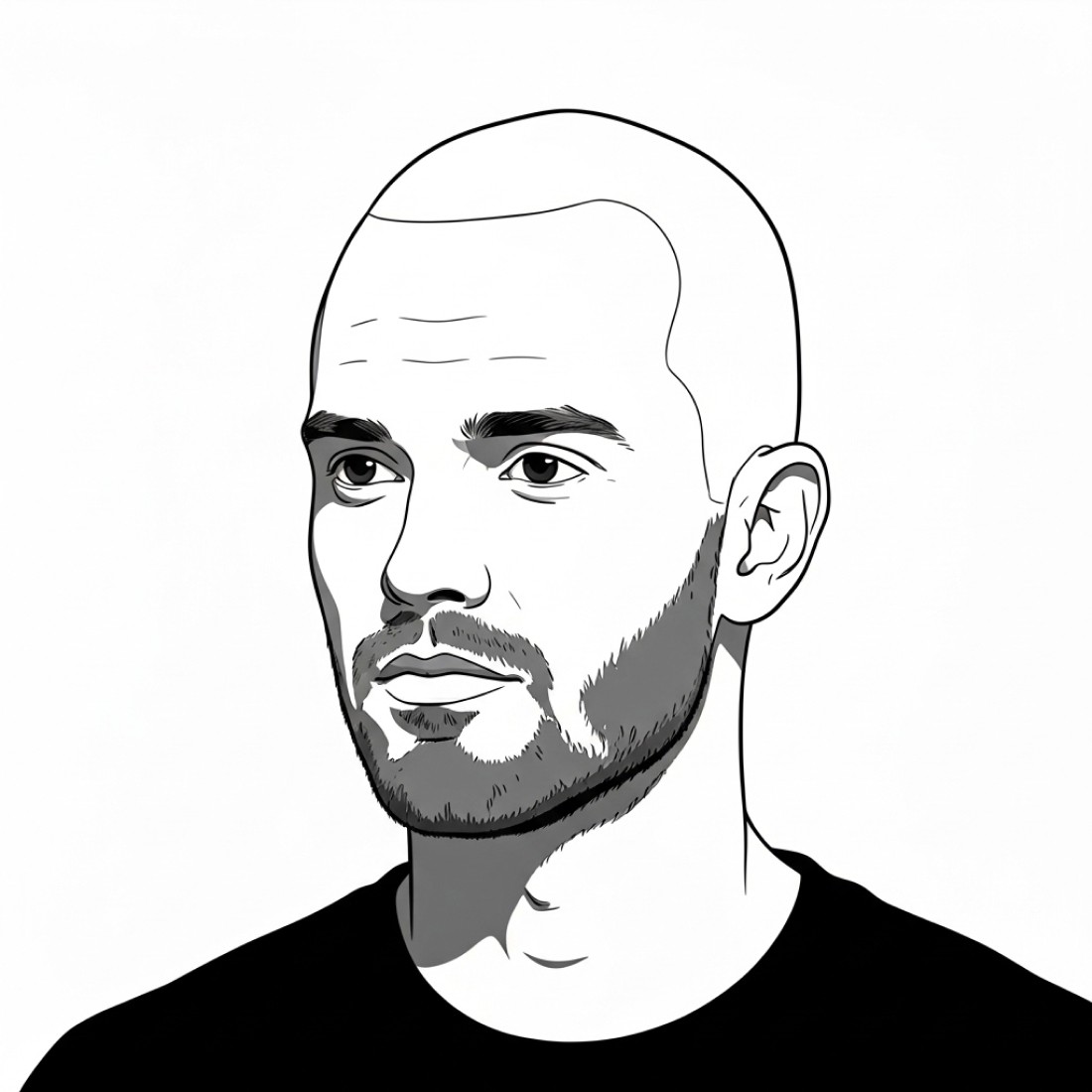 Use Google Imagen, Nano Banana, Midjourney & ChatGPT to create distinctive minimalist avatars with bald head design, medium gray beards, and clean line art styling on pure white backgrounds - perfect for professional profiles, tech leadership, creative directors, and distinguished digital identity