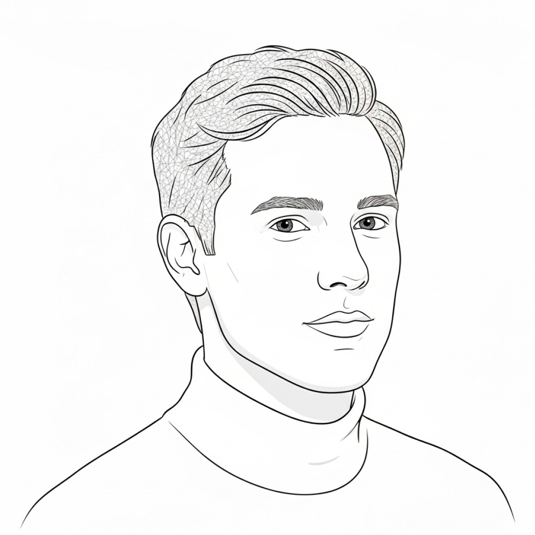 Use Google Imagen, Nano Banana, Midjourney & ChatGPT to create sophisticated minimalist avatars with subtle crosshatching texture, turtlenecks, and gentle styling on pure white backgrounds - perfect for creative professionals, design community, artistic portfolios, and refined digital identity