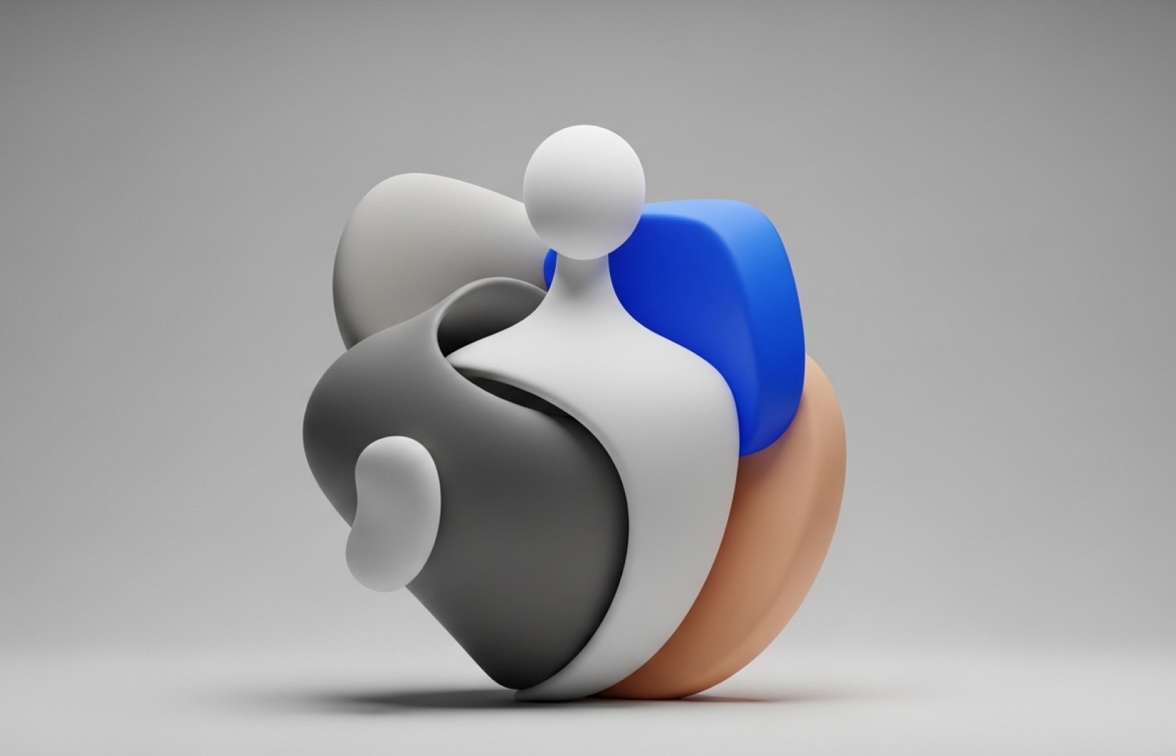 Shape Language: Organic, human-centered forms suggesting care and attention