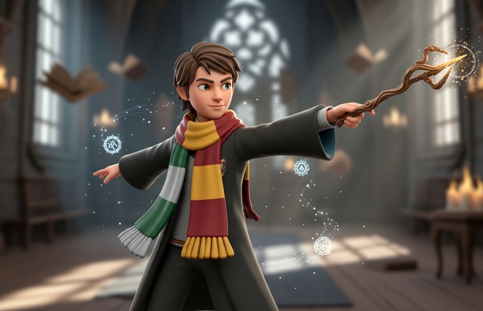 Elements to Avoid: Specific named houses, exact uniform designs, named spells