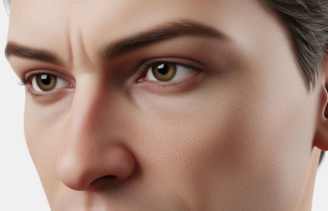 Prompt Enhancement: Add "psychologically accurate brow movement, natural frontalis activation, cognitive-emotional brow coordination, authentic forehead tension"