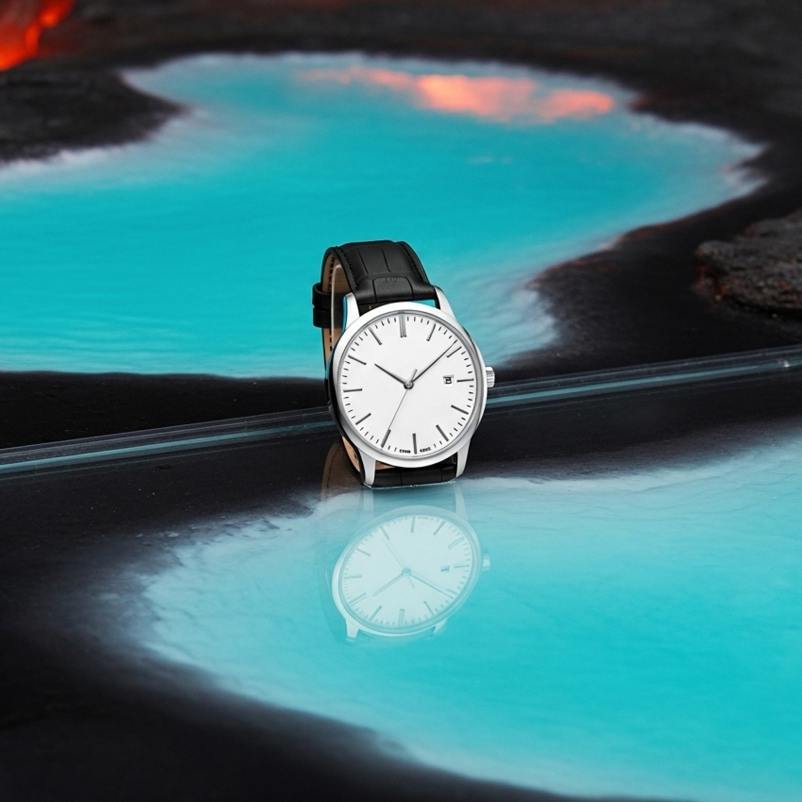 [Reference image], [product] with perfect reflection on mirror/water surface, studio lighting highlighting both product and reflection, realistic reflection physics, 8K resolution